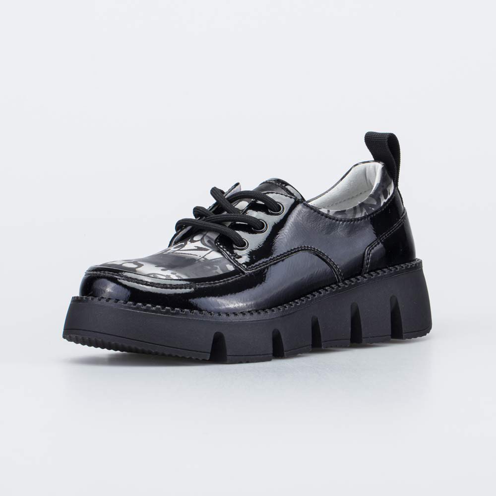 Полуботинки на массивной подошве подходят для девочки подросткового возраста и отлично сочетаются как со школьной формой, так и с повседневными образами.