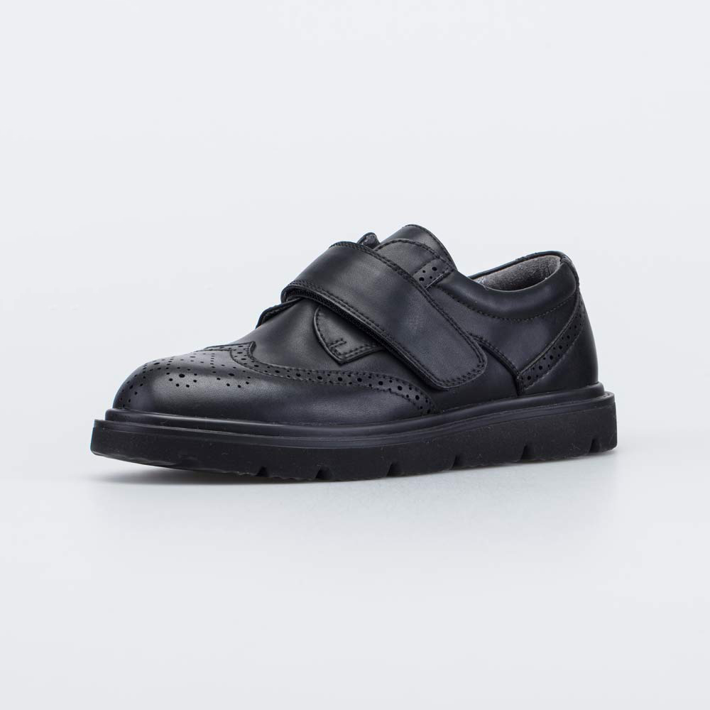 Кожаные туфли-броги с декоративной перфорацией отлично подходят для создания строгих образов, а также в качестве сменной обуви в школу.
