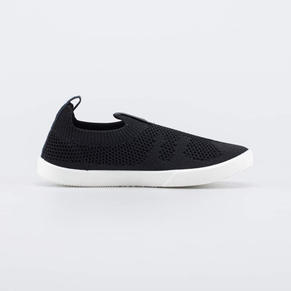 Черные кеды с белой подошвой имеют верх из вязаного текстиля, обладающего высокой воздухопроницаемостью. В такой дышащей обуви комфортно даже при длительной носке.