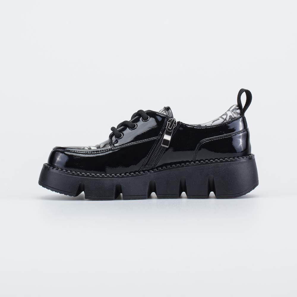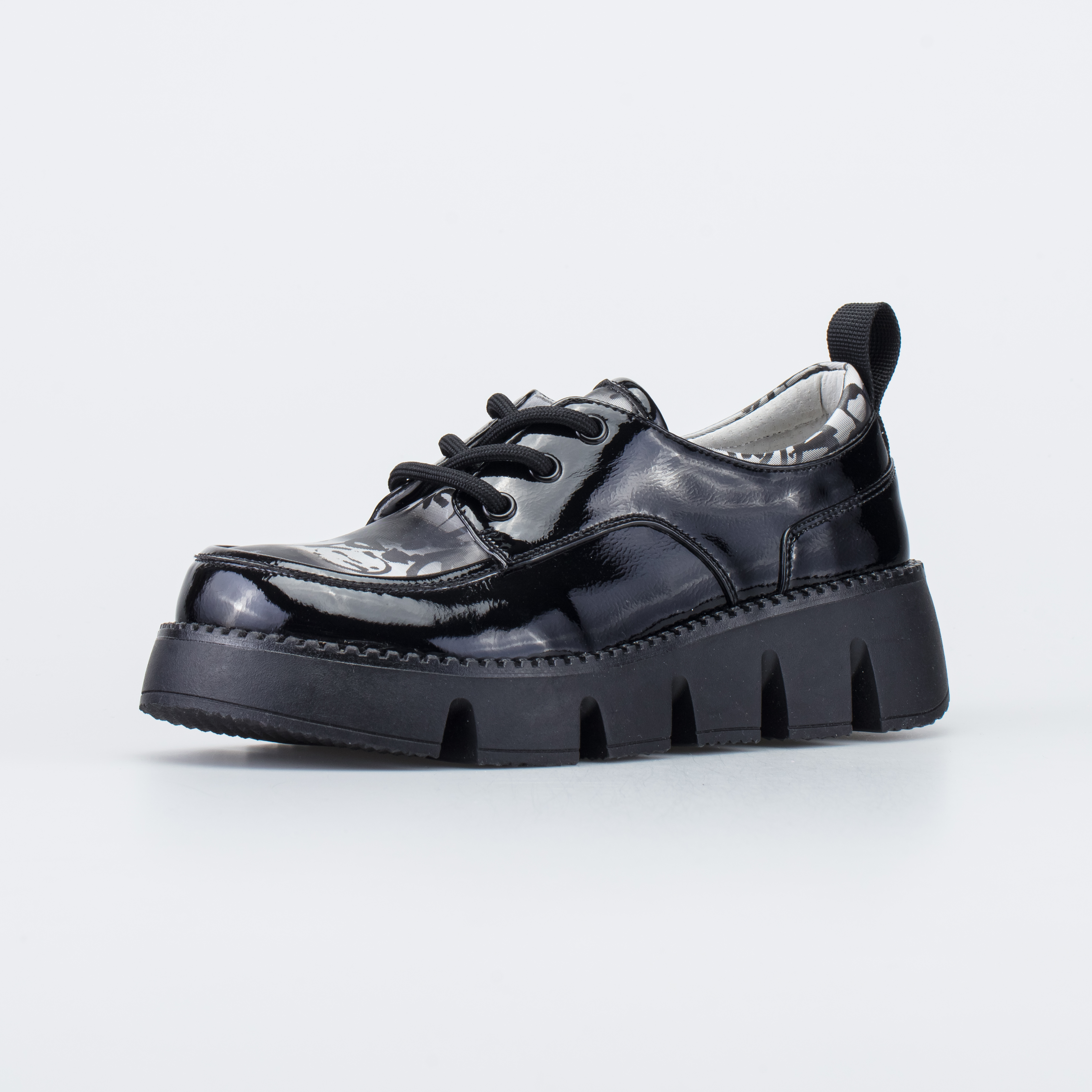 Ботинки украшены принтом, а лаконичный дизайн позволяет сочетать их со школьной формой.