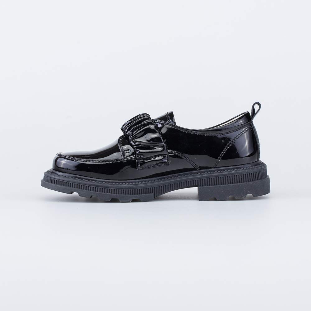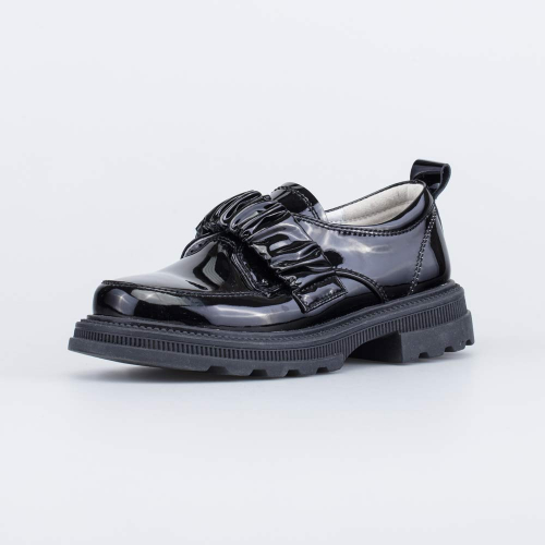 Лаковые лоуферы для девочки классического черного цвета с подкладкой из натуральной кожи. Верх выполнен из комбинации натуральной и искусственной кожи.