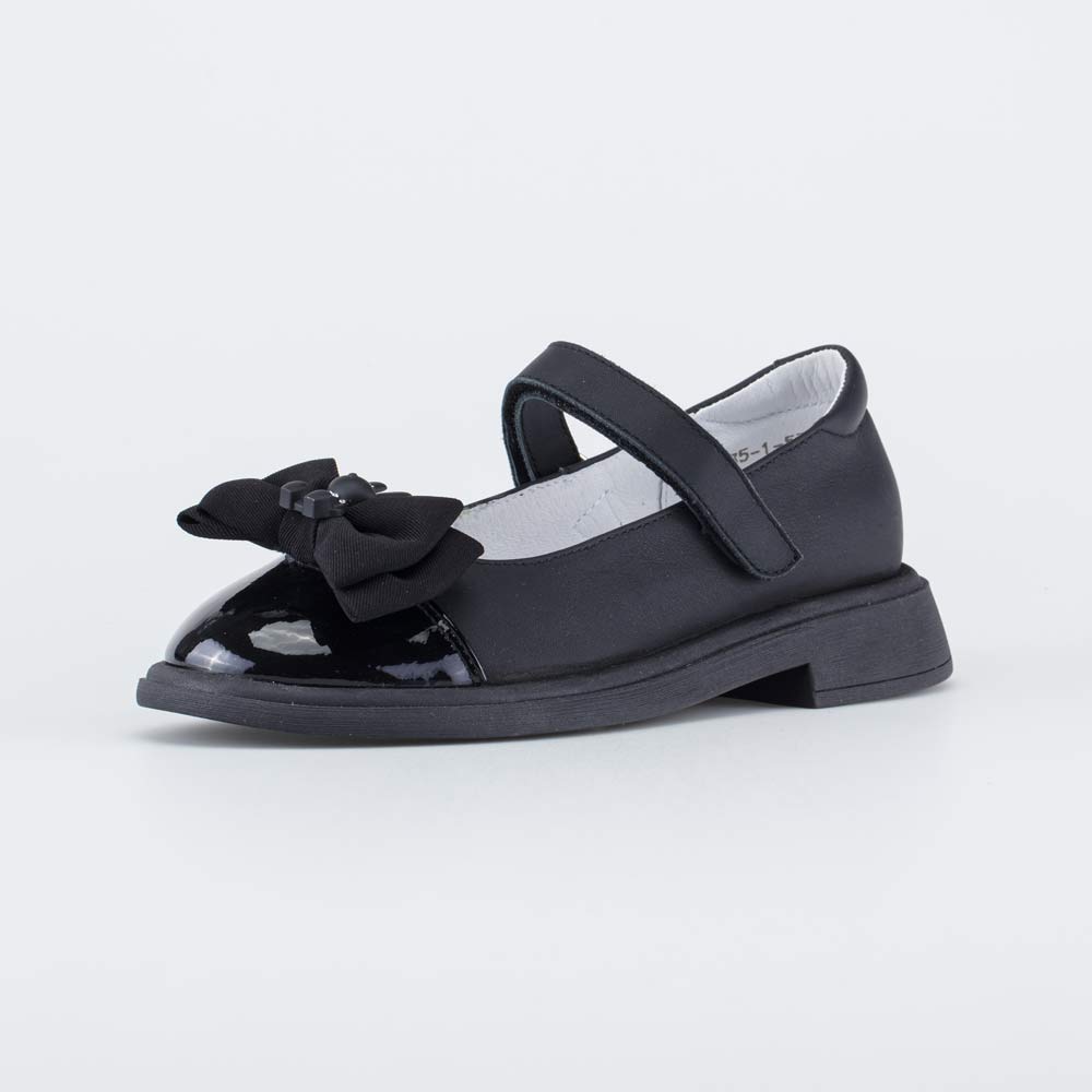 Кожаные туфли, декорированные бантиком, разработаны для девочки школьного возраста. Благодаря дизайну, они отлично подходят для повседневной носки в школу.