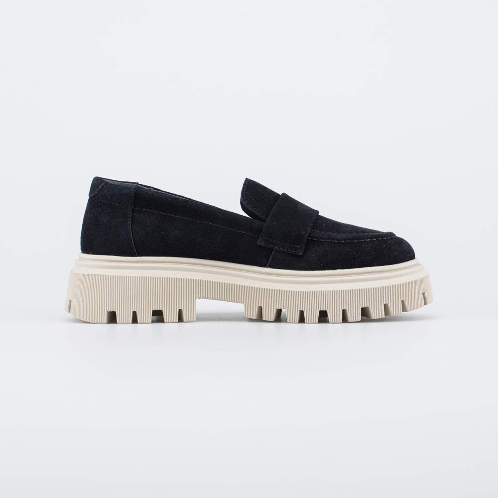 Черные кожаные лоферы на массивной тракторной подошве подходят для девочки-подростка.