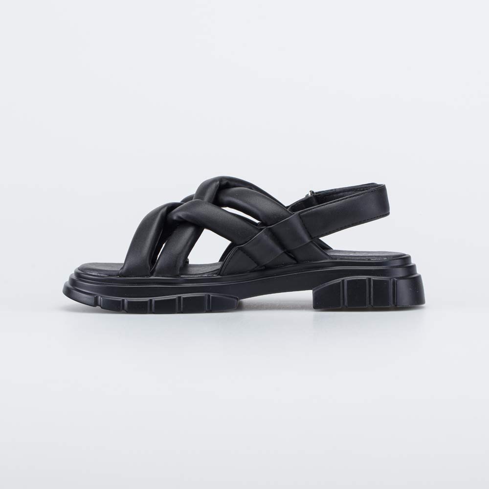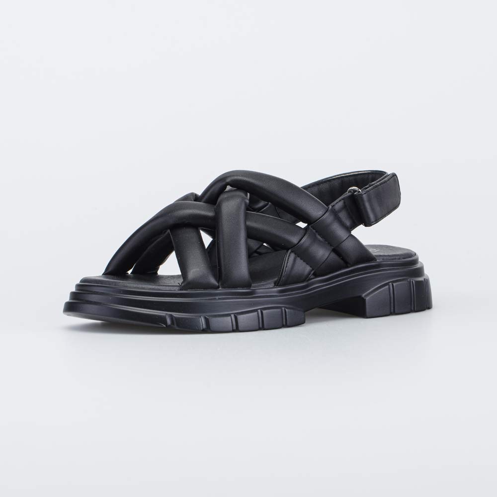 Черные сандалии с переплетом имеют верх из искусственной кожи. Подкладка и стелька изготовлены из гипоаллергенной и дышащей натуральной кожи с элементами искусственной.