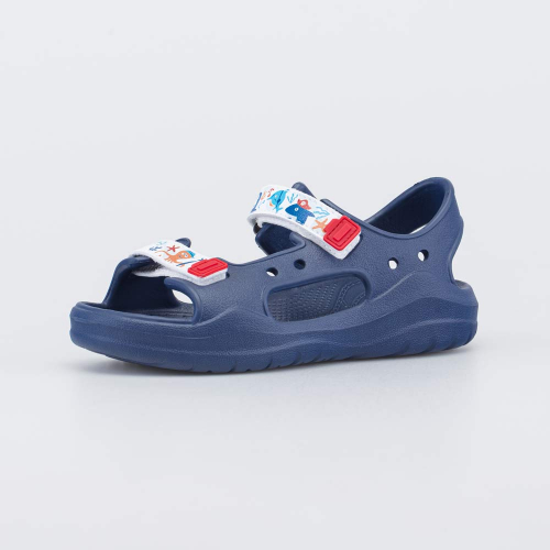 Верх летних сандалий выполнен из сочетания дышащего текстиля сеточкой и искусственной кожи. Подкладка из гипоаллергенного полиэстера дарит комфорт. Стелька из ЭВА имеет неоднородную фактуру, которая обеспечивает хорошее сцепление с влажной стопой.