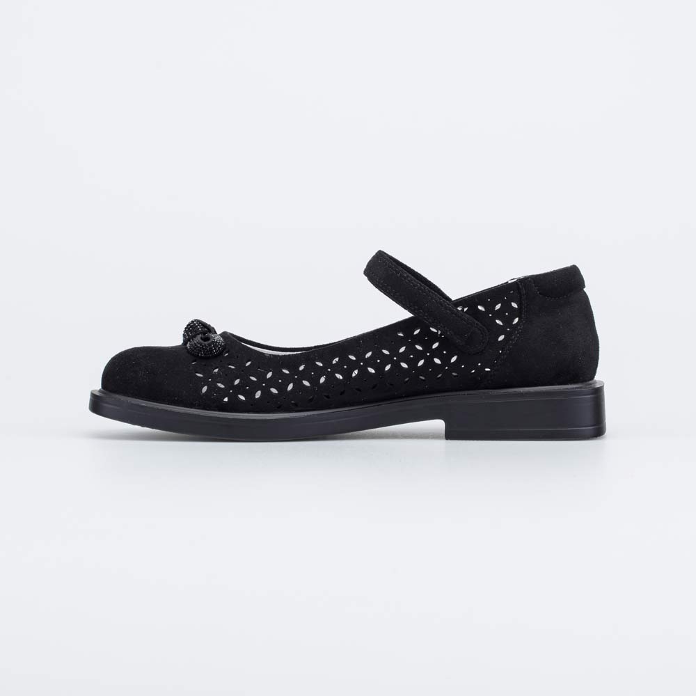 Черные кожаные туфли с перфорацией подходят для девочки-подростка.
