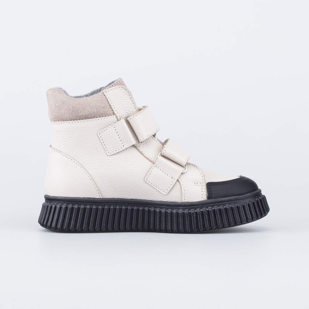 Модель анатомически правильная: во внутреннем пространстве есть небольшая приподнятость пятки по отношению к носку, которая не заметна внешне, в меру жёсткий задник и круглый носок. А стелька из натуральной шерсти имеет свойство приформовываться к своду стопы, таким образом создавая индивидуальную анатомическую форму внутреннего пространства в обуви, подходящую только вашему ребенку. Это положительно влияет на правильное развитие стоп и всего оп