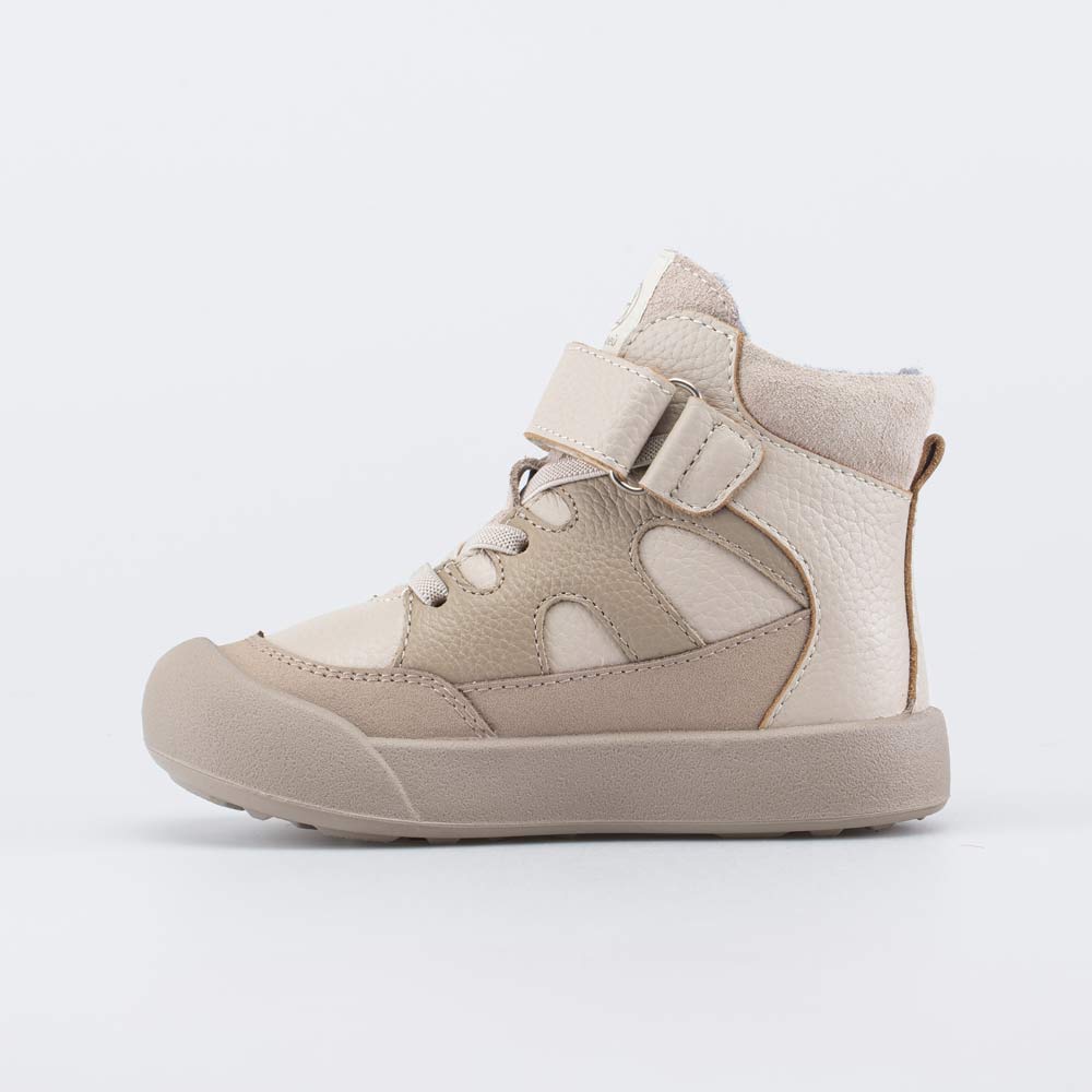 Верх детских ботинок изготовлен из гипоаллергенной и дышащей натуральной кожи. В нижней части имеется антивандальная накладка. Дополнительную защиту обеспечивает наплыв подошвы на носок.