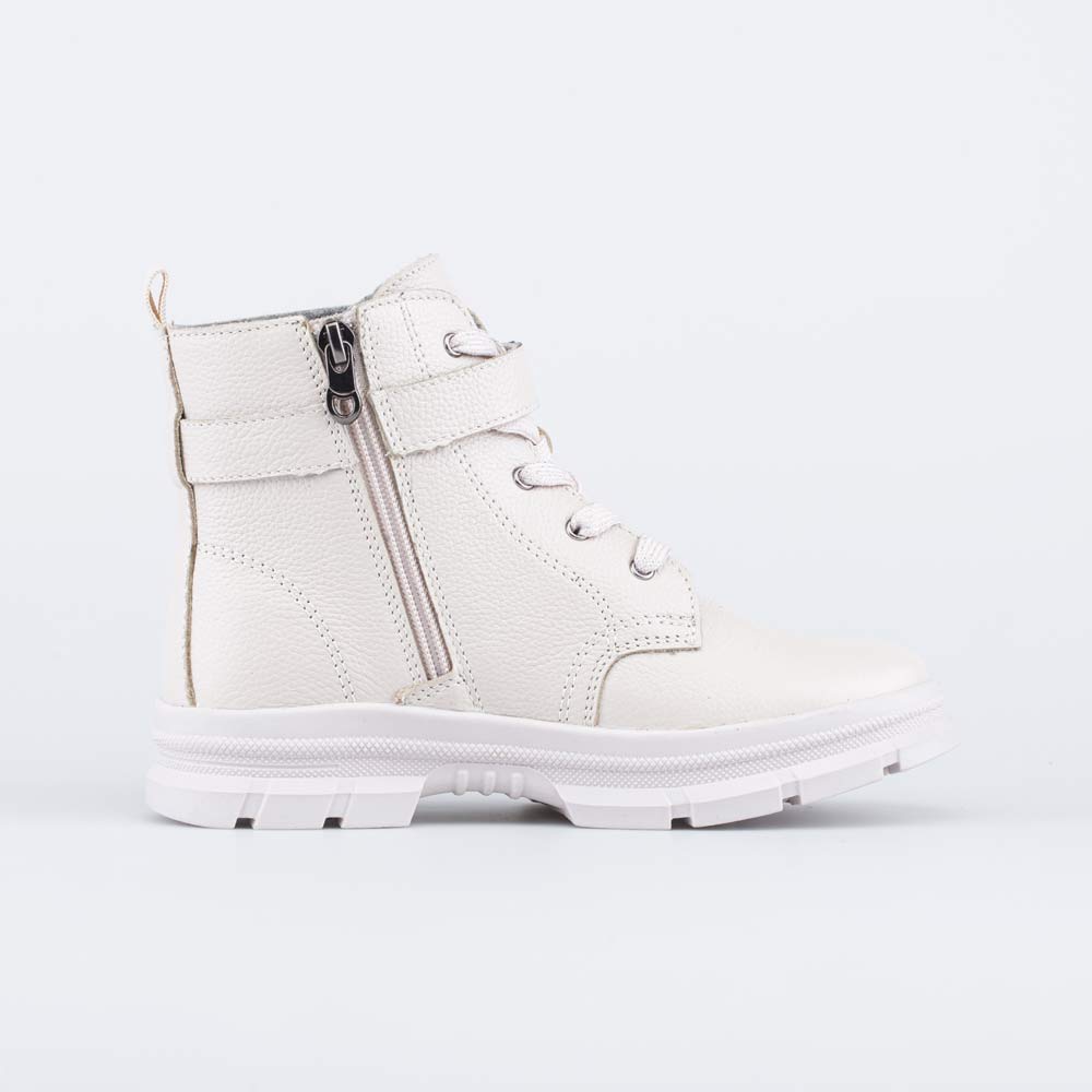 Демисезонные ботинки для девочки на байковой подкладке бежевого цвета
