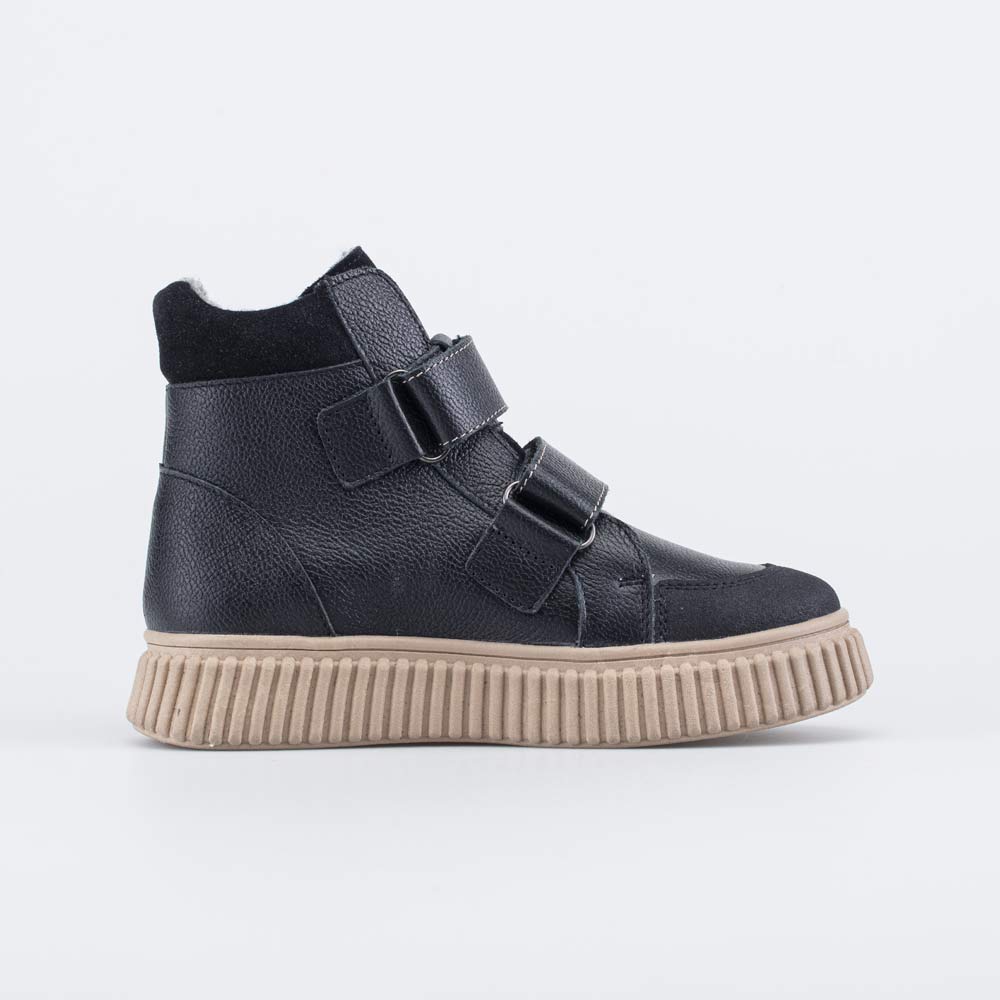 Верх этих черных ботинок изготовлен из гипоаллергенной и дышащей натуральной кожи. Носочная часть защищена антивандальной накладкой.