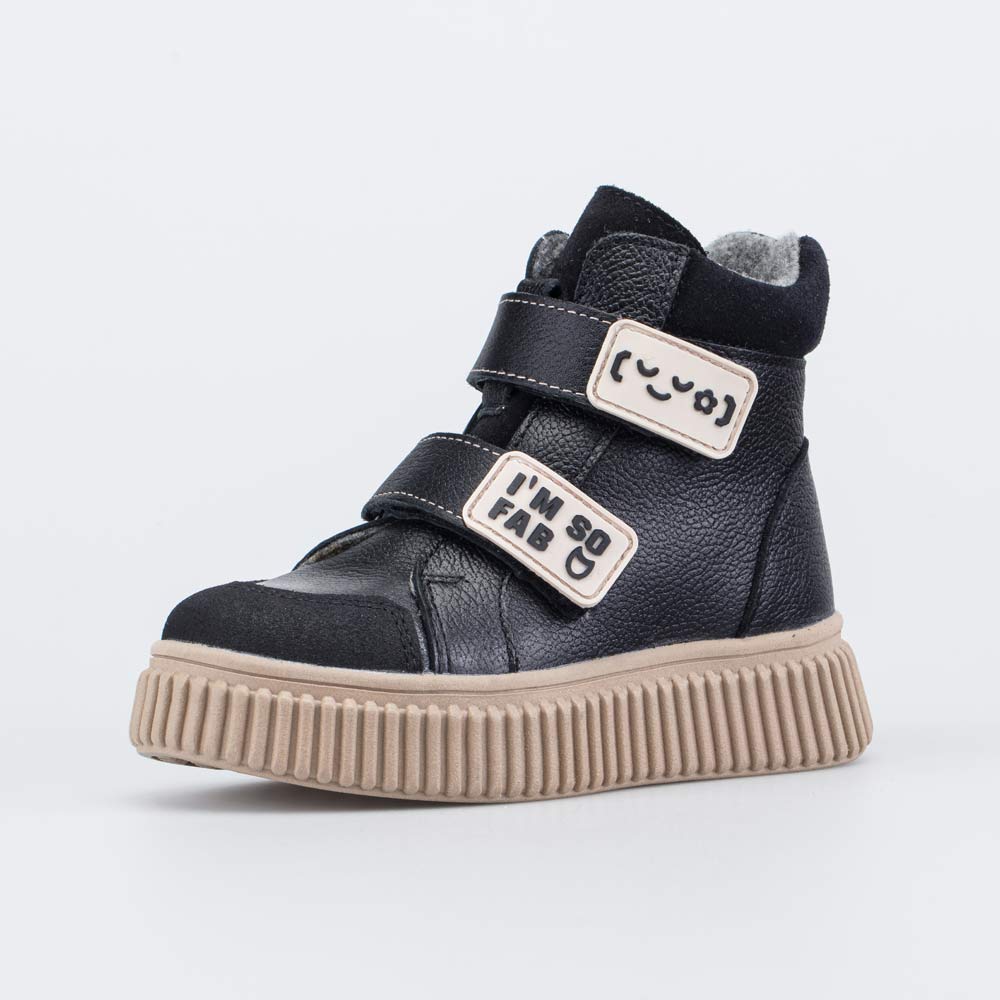 Верх выполнен из натуральной гладкой кожи черного цвета. Подкладка из байки (больше 80% натуральная овечья шерсть) и войлочная стелька хорошо сохраняют тепло.