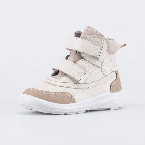 Верх детских ботинок изготовлен из натуральной кожи. Носочная и пяточная части защищены антивандальными накладками.