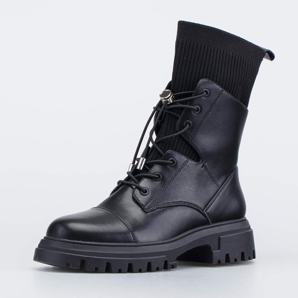 Низ (ботинок) выполнен из натуральной кожи классического черного цвета, которая эффектно дополняется текстильным чулком в рубчик.