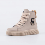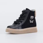 Обувь предназначена для маленьких деток, поэтому особое внимание уделено правильной конструкции: модель имеет пятку необходимой жесткости, небольшой каблучок, круглый носок.