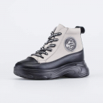 Верх выполнен из натуральной кожи, на которую нанесено сплошное полиуретановое покрытие, благодаря чему ботинки имеют особенную устойчивость к осенней грязи и весенней слякоти.