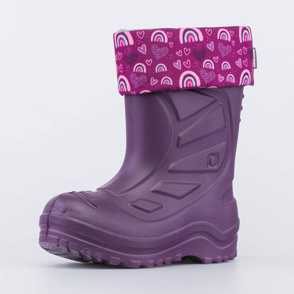 Детские утепленные сапоги из ЭВА фиолетового цвета подходят для девочки-дошкольницы.