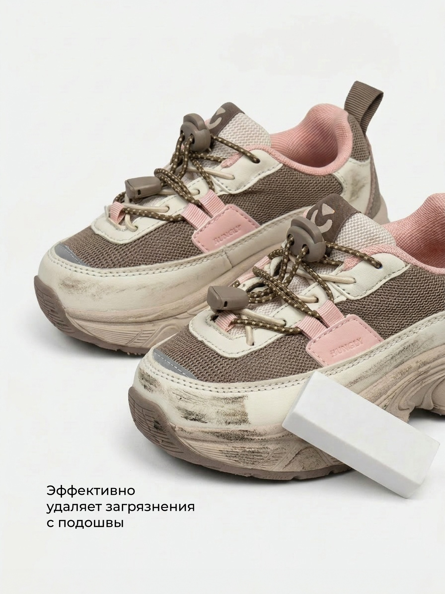 Ластик за минуту очистит замшу, нубук и резиновые подошвы от грязи, пятен, пыли и черных полос.