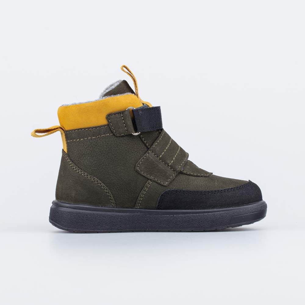 Демисезонные ботинки для мальчика, выполненные в модном цвете хаки, обеспечивают комфорт в холодную осеннюю и весеннюю погоду.