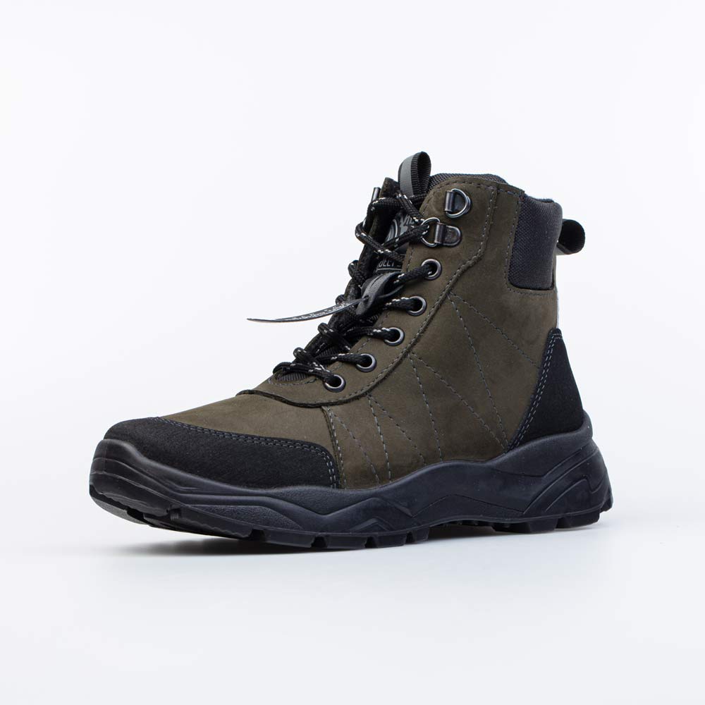 Утепленные кожаные ботинки оливкового цвета подходят для мальчика-подростка.