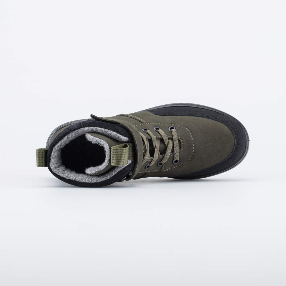 Утепленные кожаные ботинки оливкового цвета подходят для мальчика-подростка.
