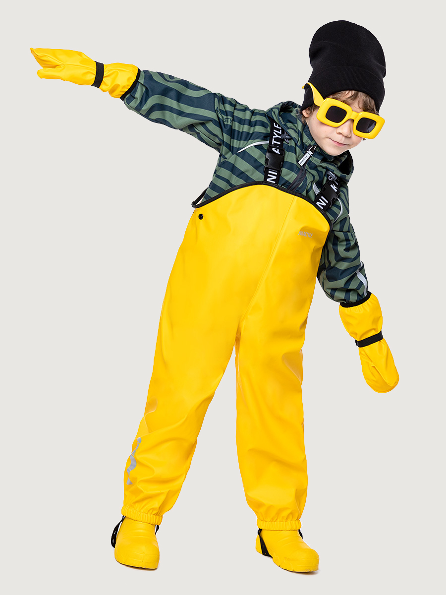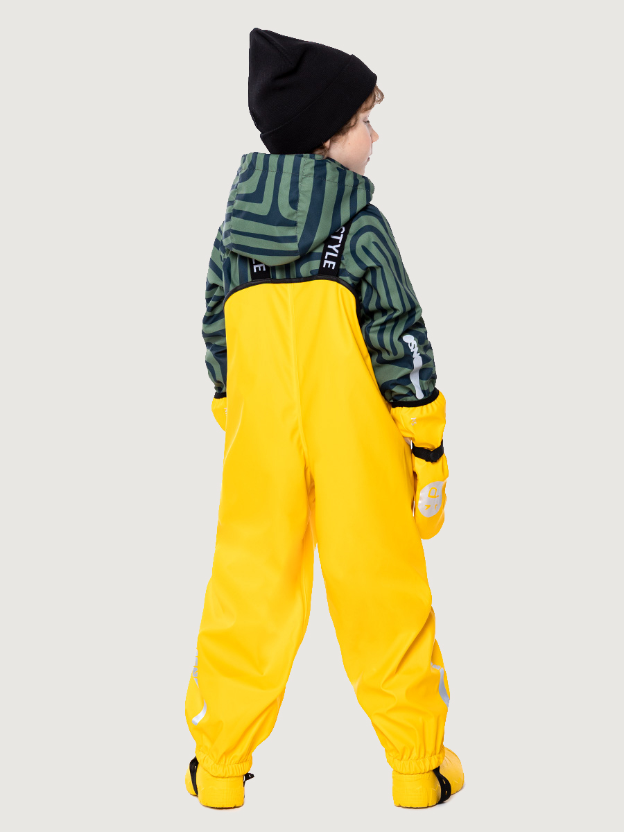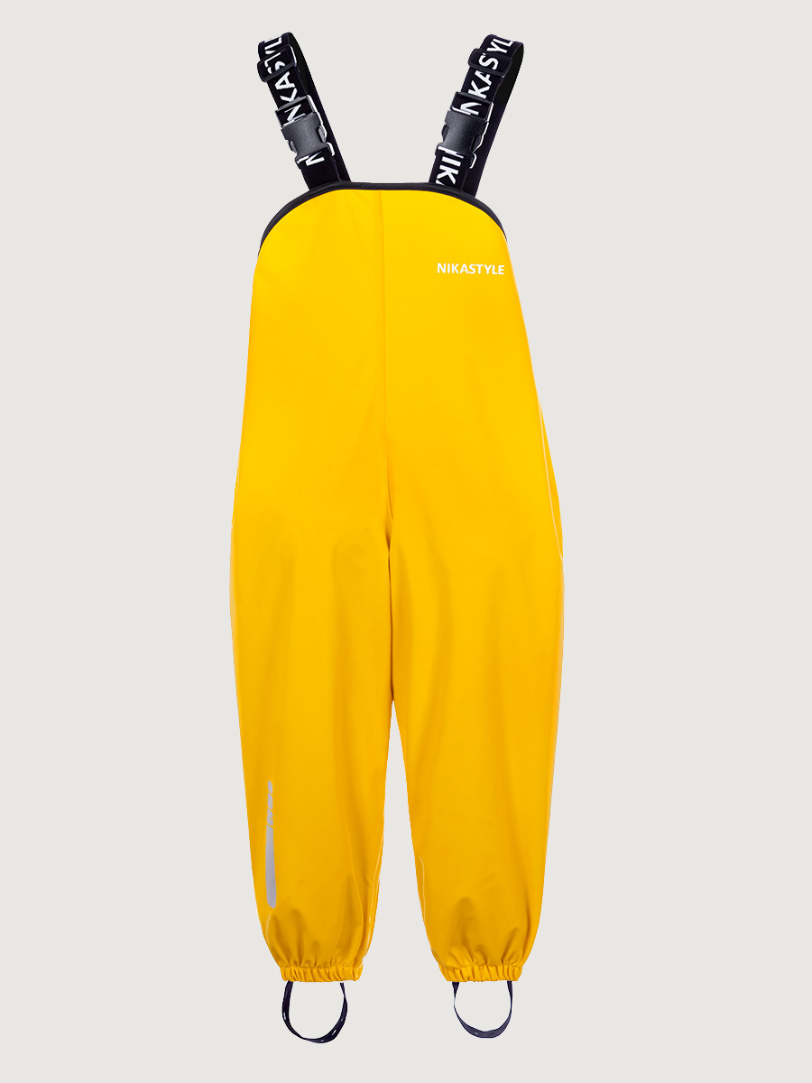Непромокаемый полукомбинезон NO RAIN с проклеенными водонепроницаемыми швами надевается поверх верхней одежды для защиты ребенка от влаги. Подкладки не имеет. Прорезиненный материал ткани на хлопковой основе обладает эластичностью, упругостью и прочностью, его смесь с хлопком придает большую мягкость ткани. Водонепроницаемый, легкий, прочный материал, обеспечивает сухость, чистоту и комфорт для ребенка. Незаменимая вещь для практичных родителей и их непоседливых малышей. Свободный покрой позволяет легко надевать его на верхнюю одежду. Регулируемые штрипки и резинка по низу брюк позволяют надевать полукомбинезон поверх обуви. Наличие светоотражающих элементов для безопасности ребенка в темное время суток. Комфортная температура эксплуатации от -5 до +10 С.