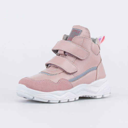 Розовые кожаные ботинки имеют классический крой и неубиваемую защиту носа и предназначены для девочки, которая только начинает ходить.