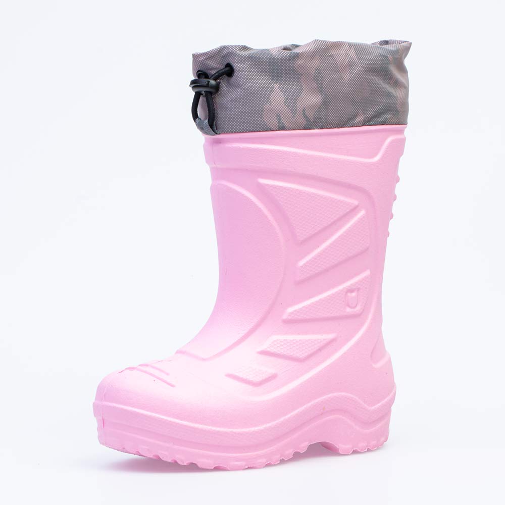Детские утепленные сапожки из ЭВА имеют вкладной чулок и манжету для защиты от влаги.