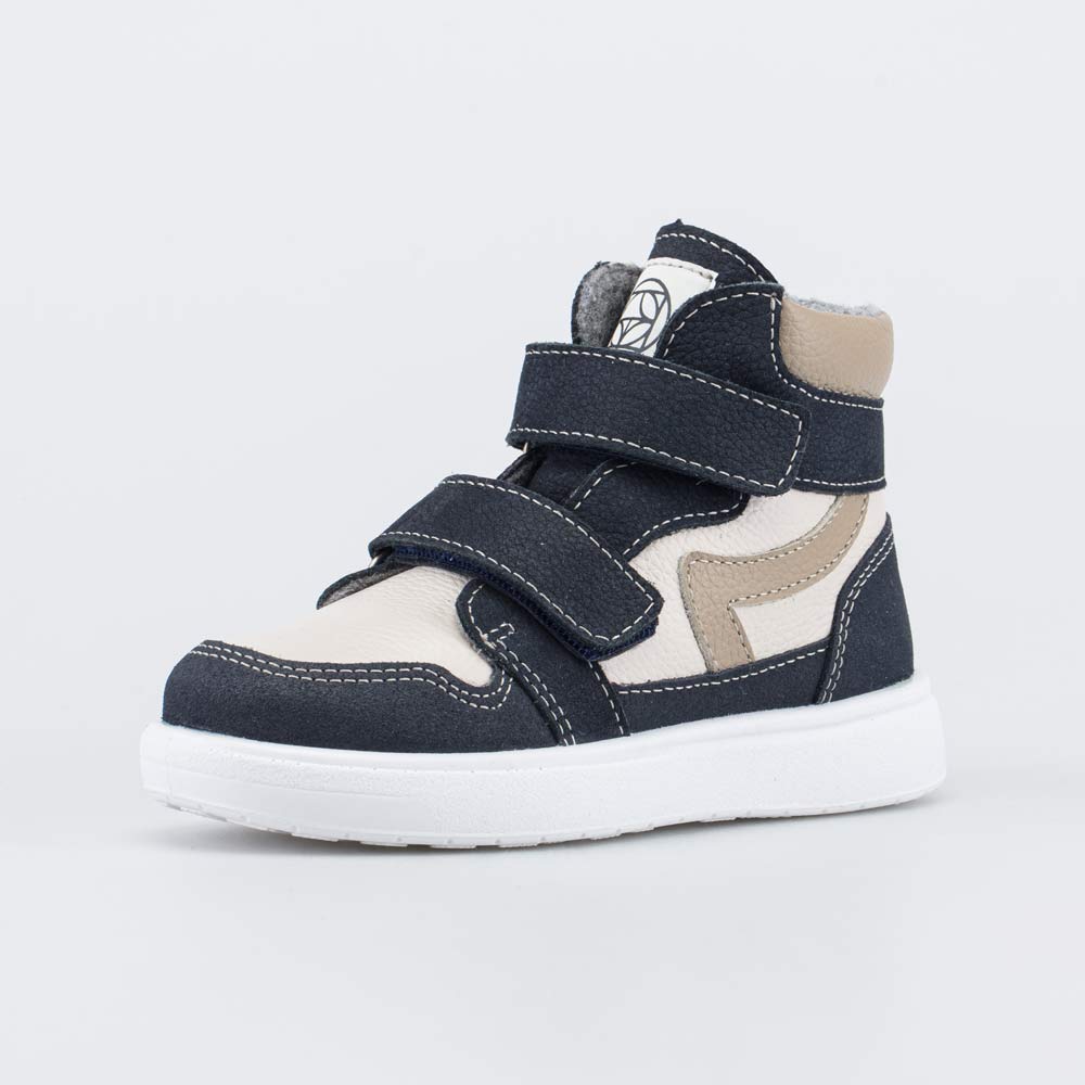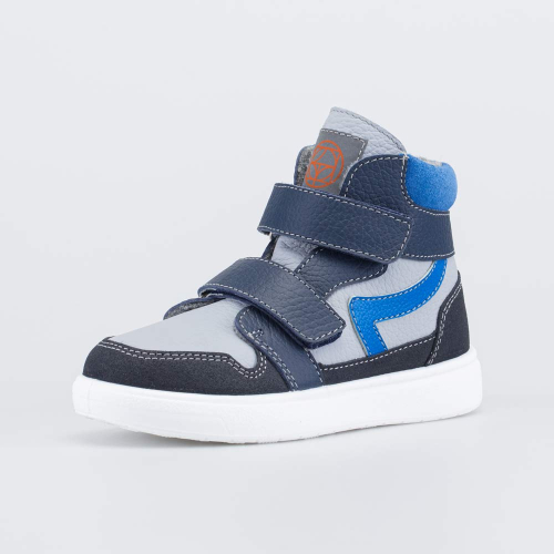 Верх детских ботинок из натуральной кожи выполнен в тренде колорблок, который заключается в гармоничном сочетании цветов. Носок и пятка защищены антивандальными накладками.