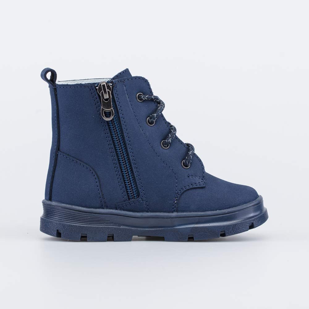 Демисезонные ботинки выполнены в благородном синем цвете, подходят для мальчика-дошкольника.