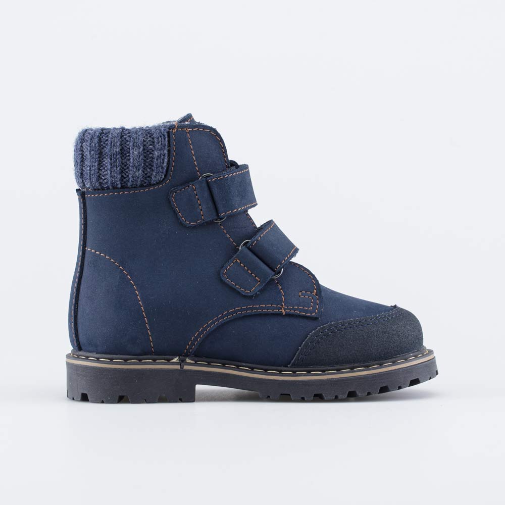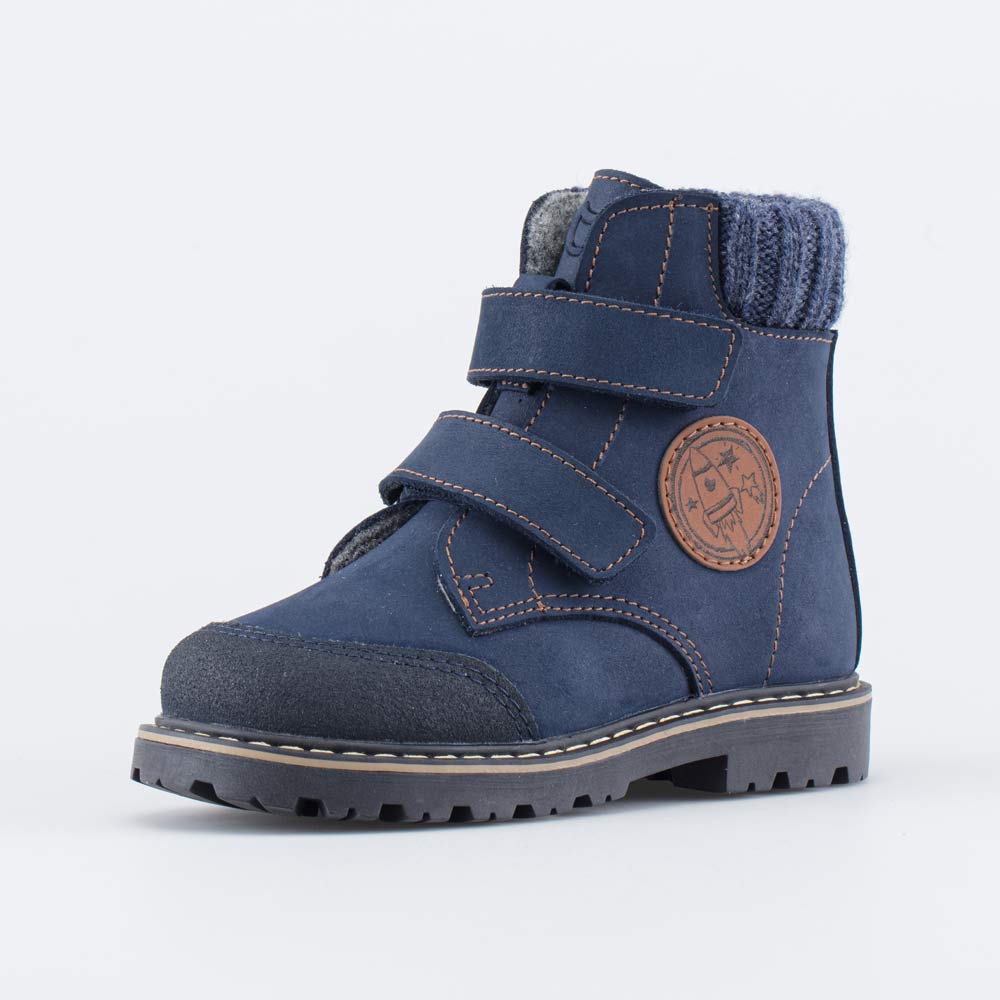 Утепленные кожаные ботинки синего цвета подходят для мальчика-дошкольника.
