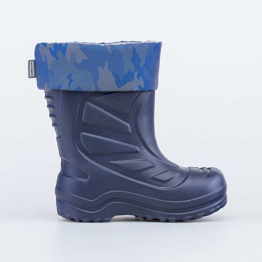 Детские утепленные сапоги из ЭВА имеют двухслойный вкладной чулок и учитывают особенности детской стопы.