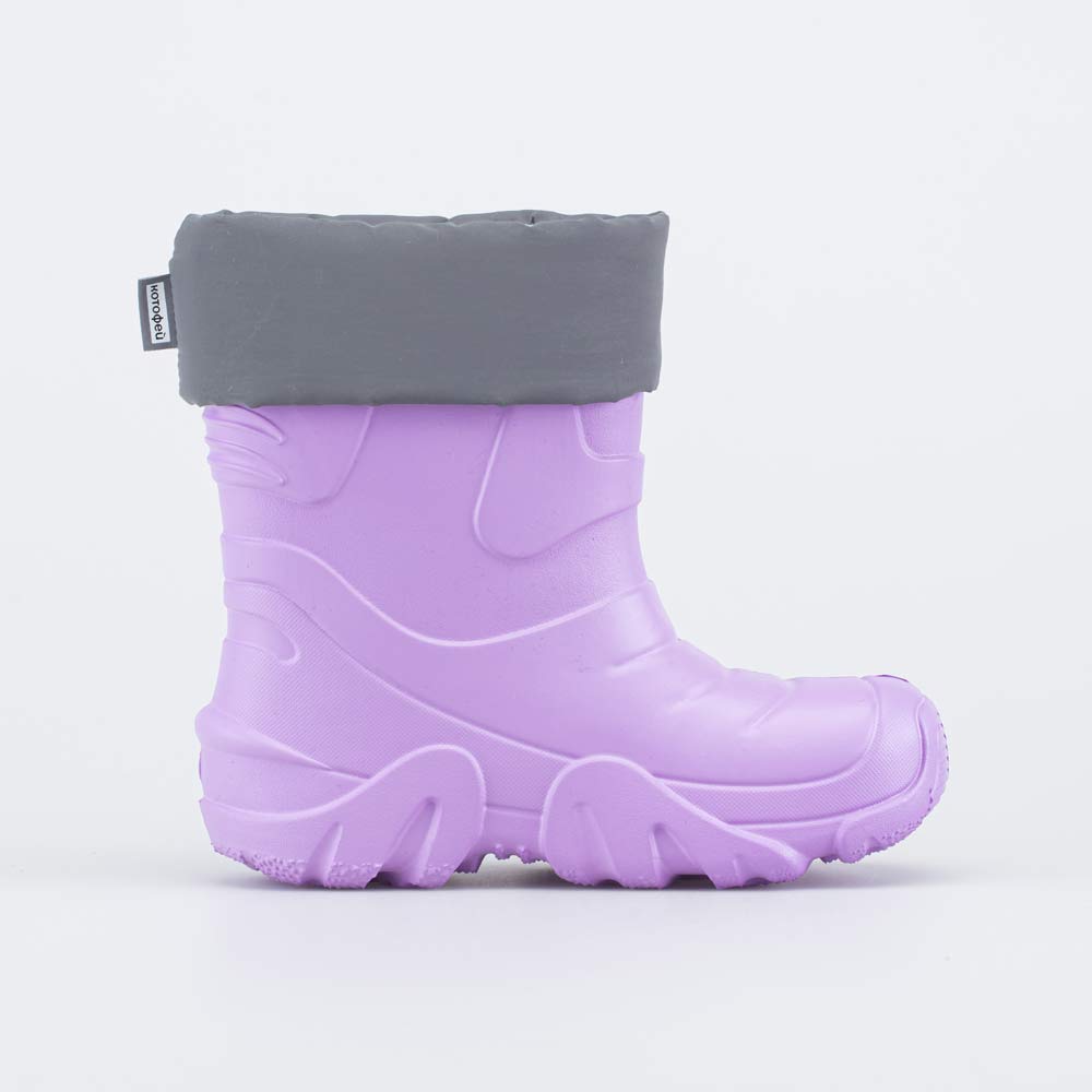 Утепленные сапоги из мягкого, гибкого и амортизирующего материала ЭВА выполнены в сиреневом цвете. Имеют двухслойный вкладной чулок и учитывают особенности детской стопы.