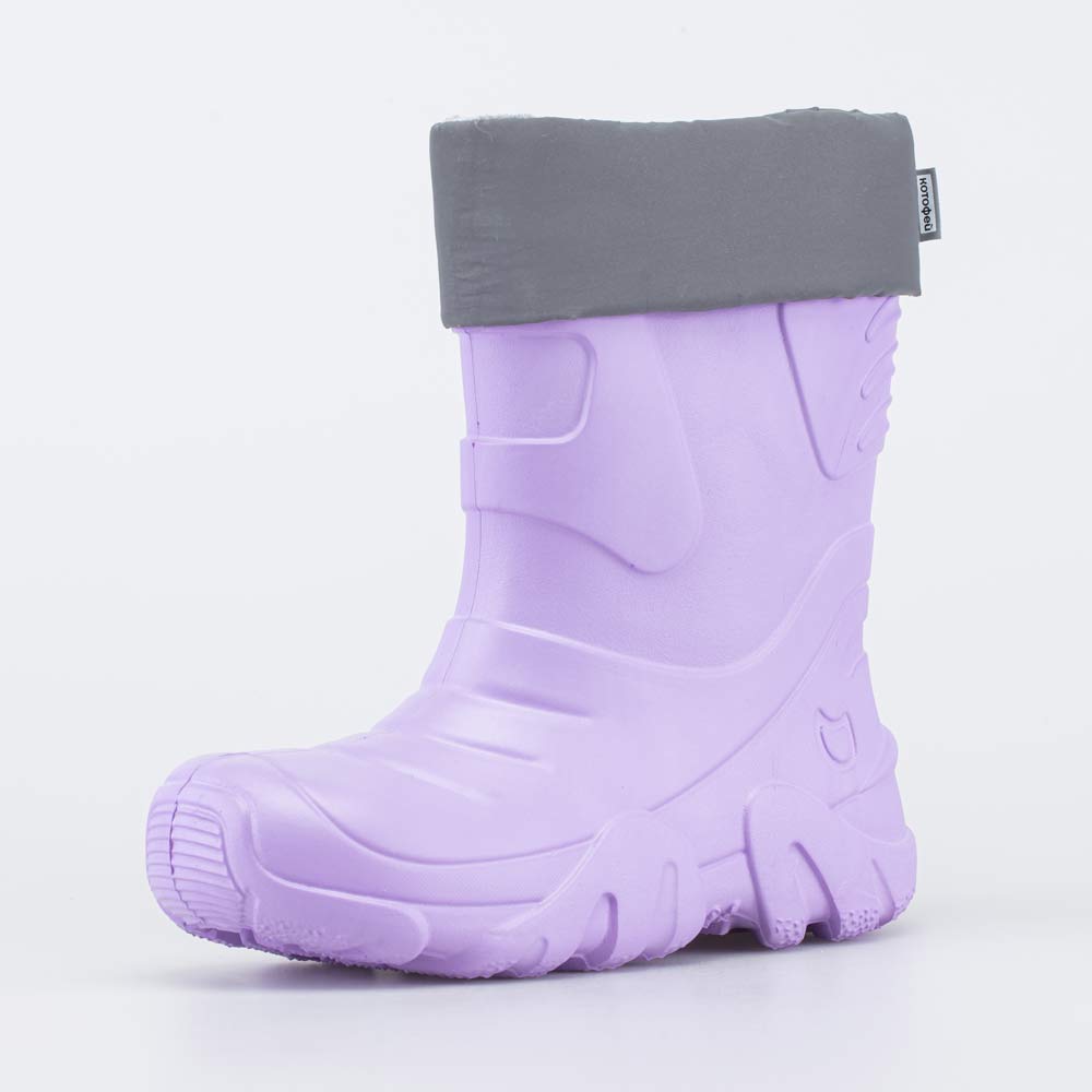 Утепленные сапоги из ЭВА имеют трехслойный вкладной чулок и учитывают особенности детской стопы.