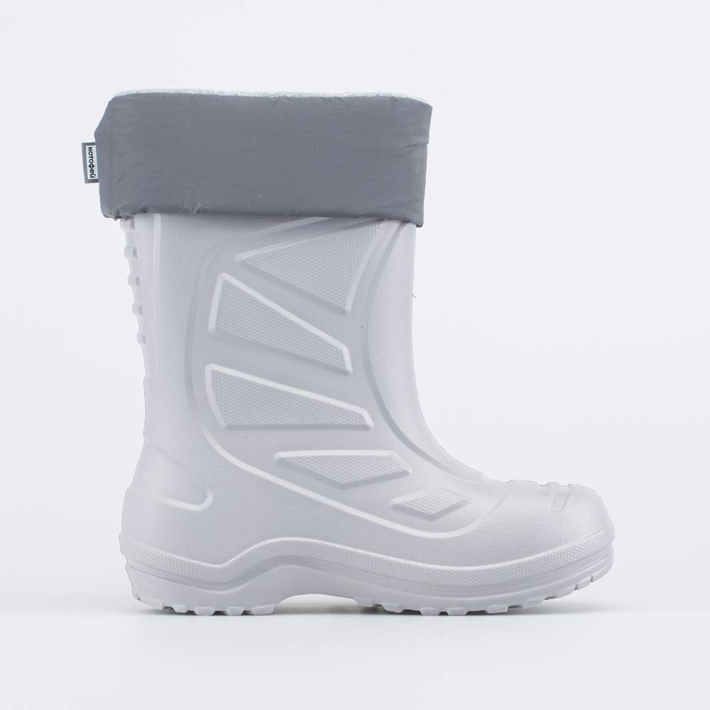 Утепленные сапожки из легкого, гибкого и амортизирующего материала ЭВА выполнены в трендовом сером цвете.