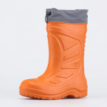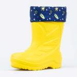 Утепленные сапоги из легкого, гибкого и амортизирующего материала ЭВА выполнены в позитивном желтом цвете. Имеют вкладной чулок и учитывают возрастные особенности стопы.