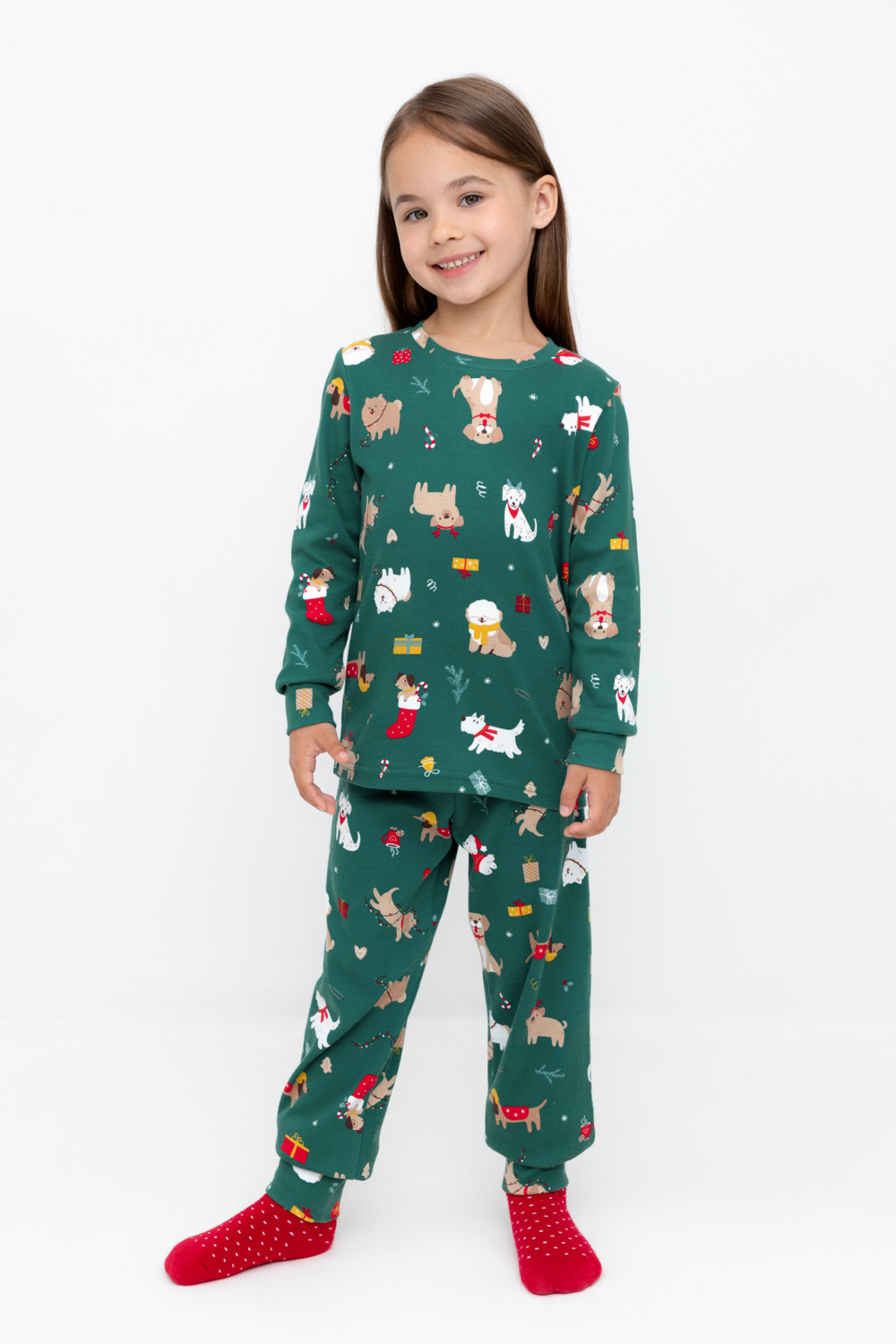 Crockid Пижама К 1552 тем.зеленый, собачки новый год Crockid