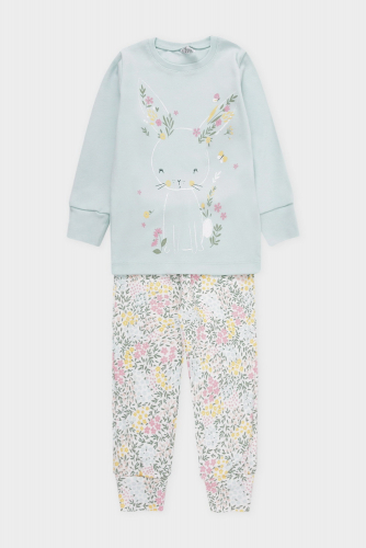 Пижама для девочки из натурального хлопка. Джемпер с длинными втачными рукавами и брюки с эластичной резинкой в поясе. Мягкие манжеты по низу брюк сделаны из материала в рубчик. Оригинальная набивка выполнена из стойких текстильных гипоаллергенных красителей. Изделие сохраняет цвет и форму после многократных стирок. Все трикотажные полотна производятся в соответствии с нормами швейцарского сертификата ЭкоТекс.