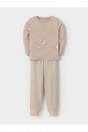 Трикотажная пижама в рубчик из натурального хлопка. Джемпер с длинными втачными рукавами и лосины с эластичной резинкой в поясе. Оригинальная набивка выполнена из стойких текстильных гипоаллергенных красителей. Изделие сохраняет цвет и форму после многократных стирок. Все трикотажные полотна производятся в соответсвии с нормами швейцарского сертификата ЭкоТекс.