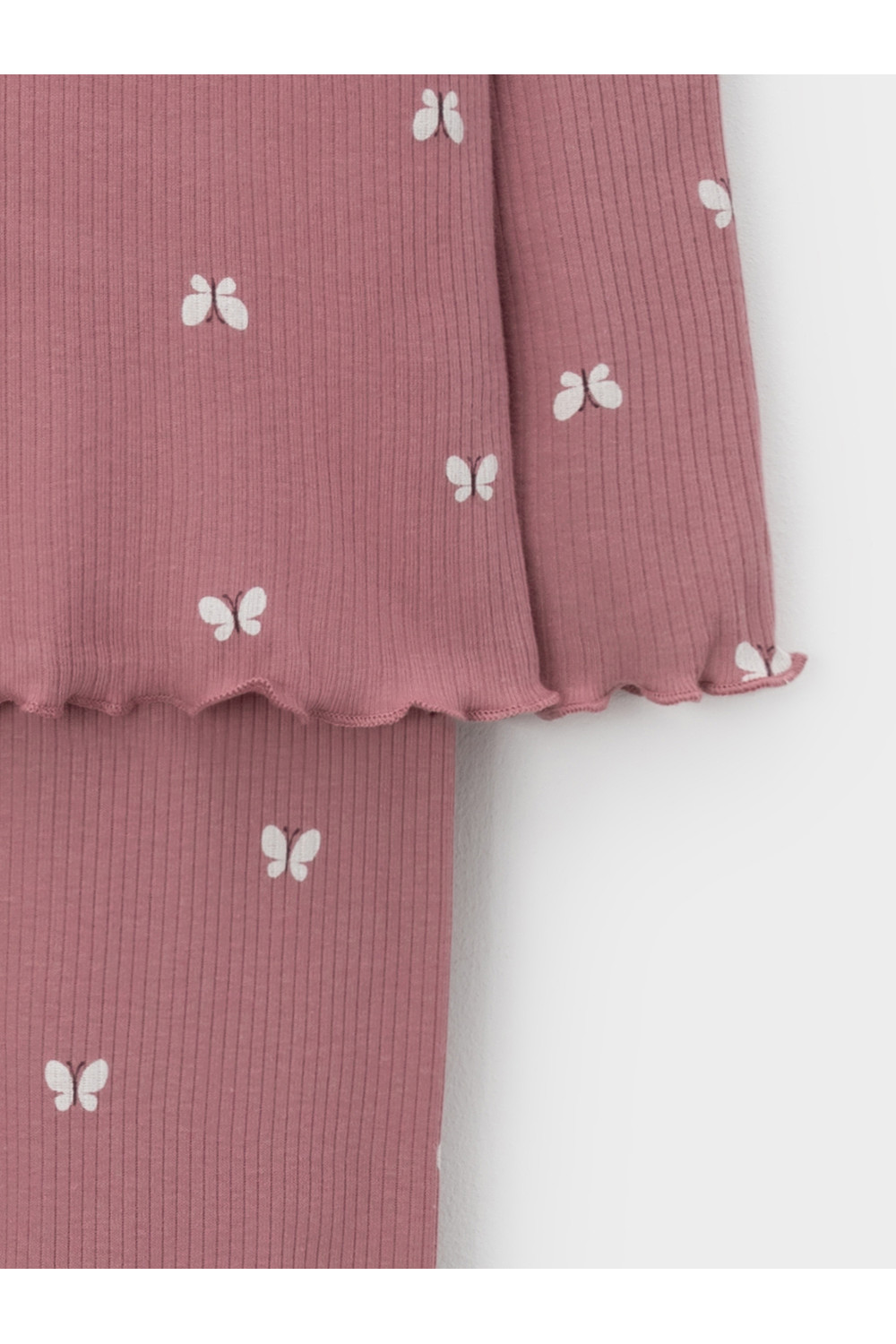 Трикотажная пижама в рубчик из натурального хлопка. Джемпер с длинными втачными рукавами и лосины с эластичной резинкой в поясе. Оригинальная набивка выполнена из стойких текстильных гипоаллергенных красителей. Изделие сохраняет цвет и форму после многократных стирок. Все трикотажные полотна производятся в соответствии с нормами швейцарского сертификата ЭкоТекс.
