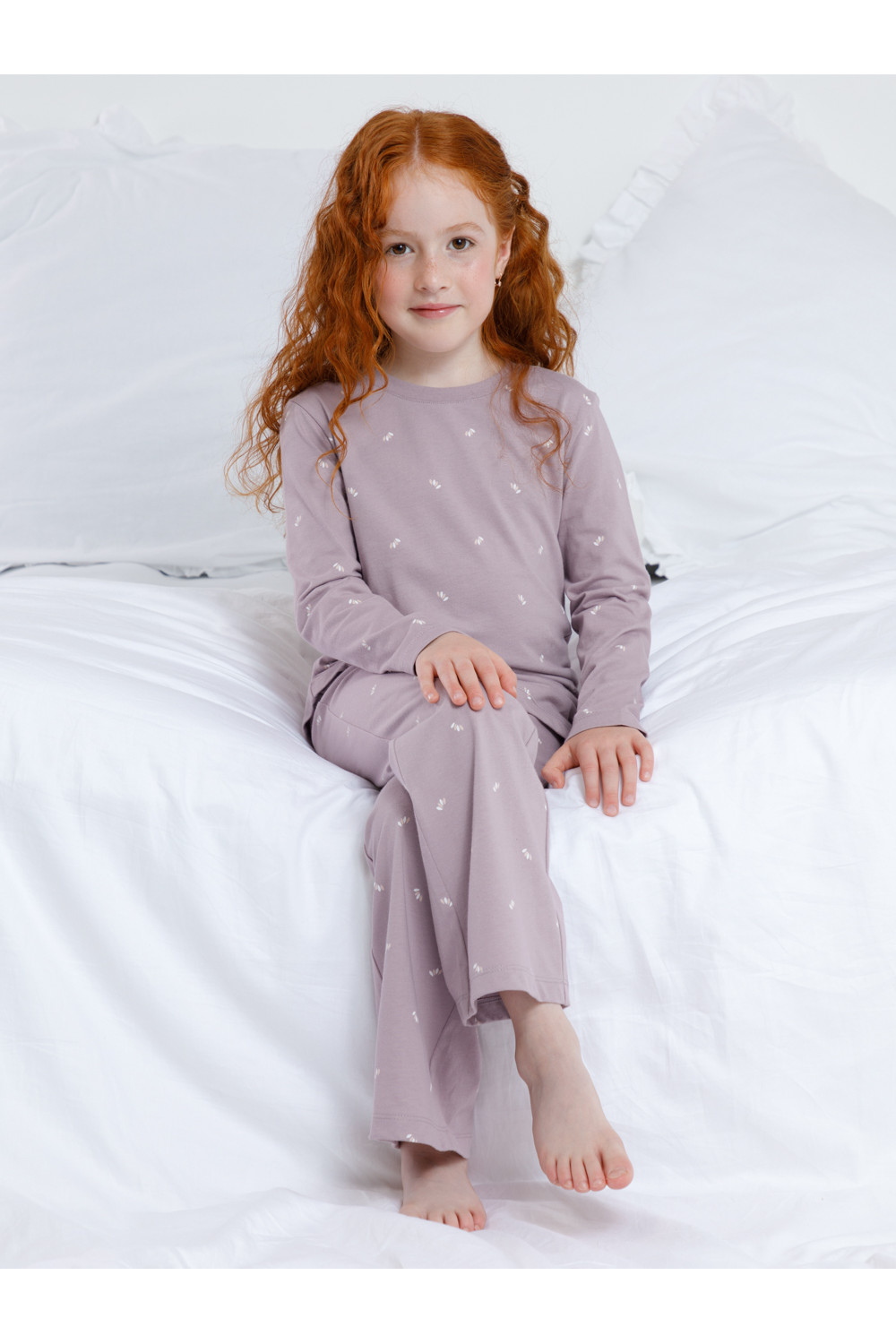 Пижама для девочки из натурального хлопка. Джемпер с длинными втачными рукавами и прямые брюки с эластичной резинкой в поясе. Оригинальная набивка выполнена из стойких текстильных гипоаллергенных красителей. Изделие сохраняет цвет и форму после многократных стирок. Все трикотажные полотна производятся в соответствии с нормами швейцарского сертификата ЭкоТекс.