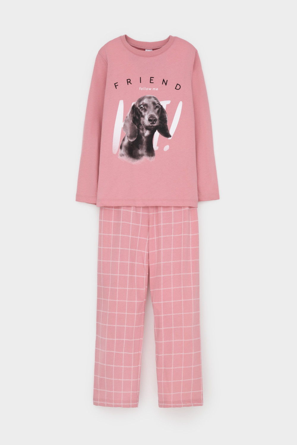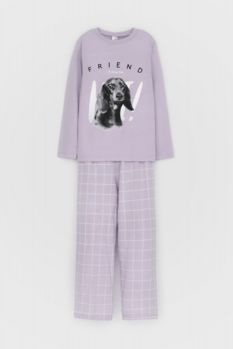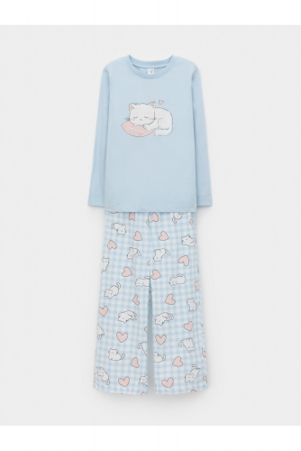 Трикотажная пижама из натурального хлопка. Джемпер с принтом и длинными втачными рукавами. У брюк в комплекте мягкий, эластичный пояс на резинке. Оригинальная набивка выполнена из стойких, гипоаллергенных текстильных красителей. Комплект сохраняет цвет и форму после многократных стирок. Все трикотажные полотна производятся в соответсвии с нормами Швейцарского сертификата ЭкоТекс.