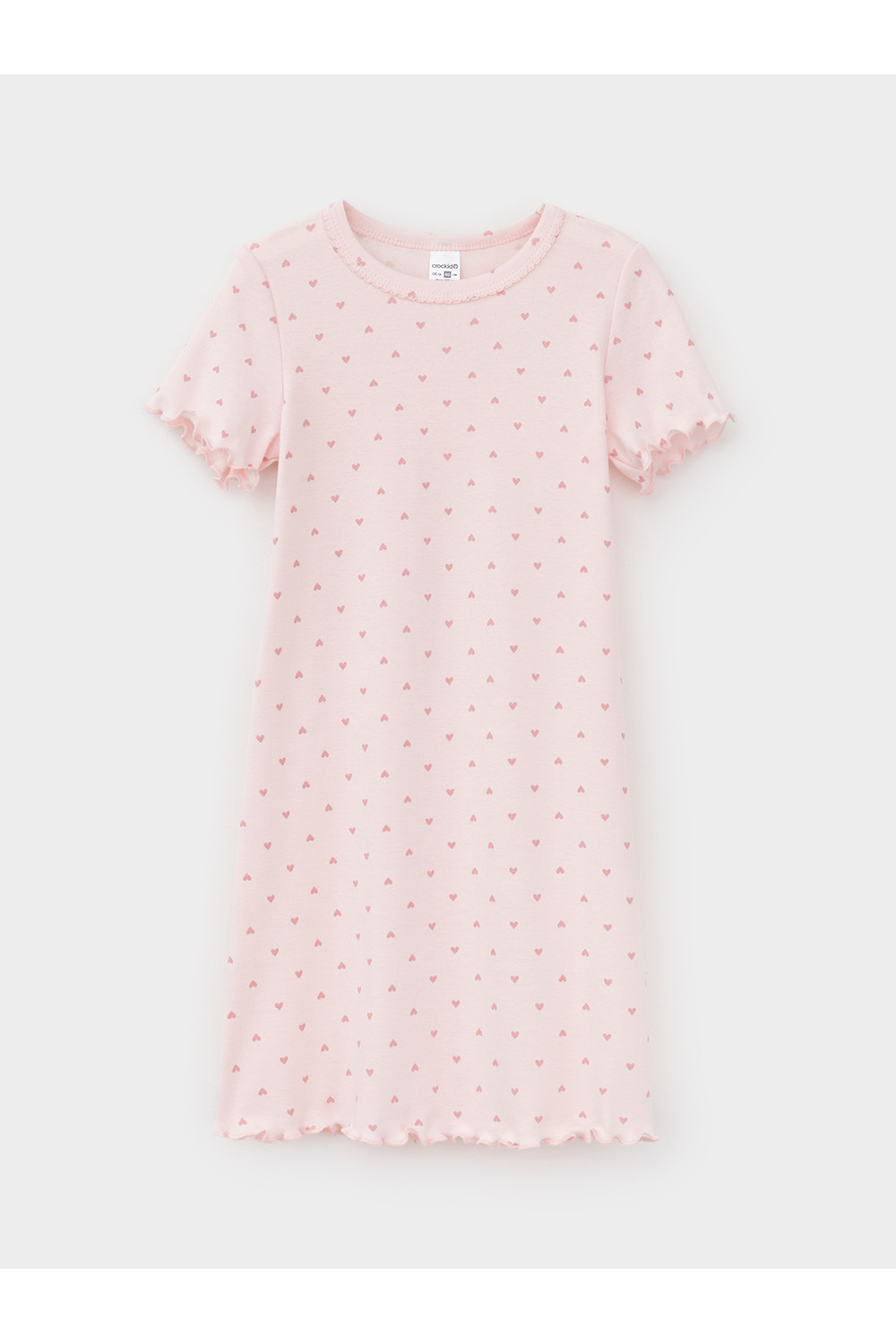 Сорочка с короткими втачными рукавами для девочки. Изготовлена из мягкого эластичного трикотажа в рубчик, произведённого из натурального хлопка. Оригинальная набивка выполнена из стойких гипоаллергенных текстильных красителей. Изделие сохраняет цвет и форму после многократных стирок. Все трикотажные полотна производятся в соответствии с нормами швейцарского сертификата ЭкоТекс.