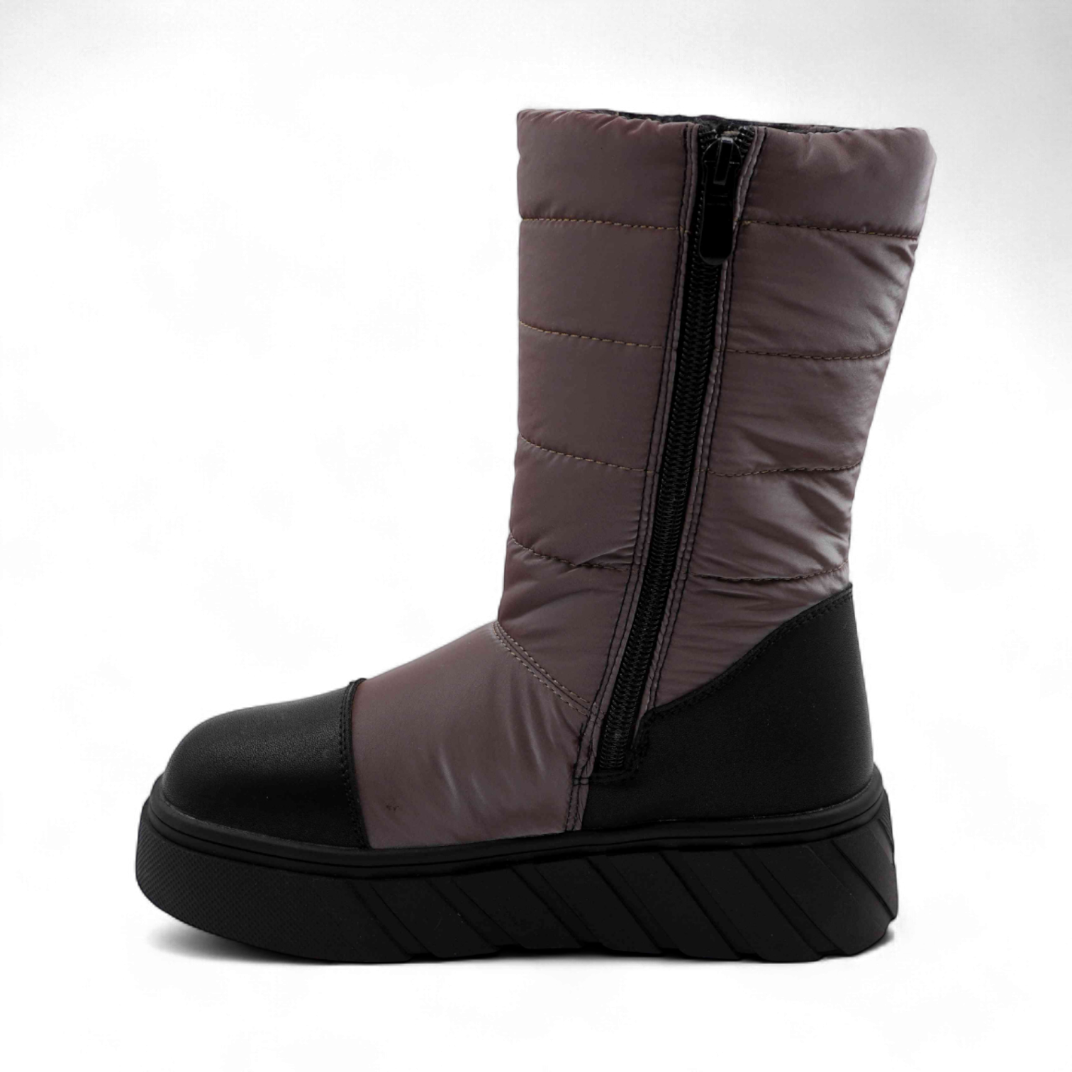 Материал: Верх обуви выполнен из непромокаемого текстиля, что обеспечивает надежную защиту от снега и влаги. Вставки из эко-кожи дополнительно защищают мысок и пятку сапожек от механических повреждений. Уникальная быстросохнущая и водоотталкивающая подкладка из искусственного меха позволяет сохранять сухость и тепло в любых условиях.