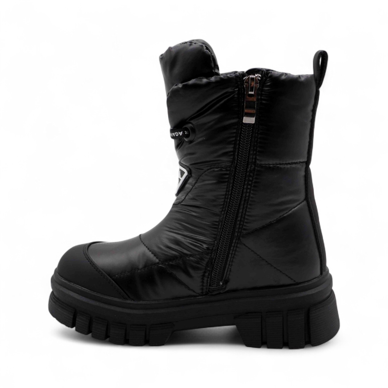 Материал: Верх обуви выполнен из непромокаемого текстиля, что обеспечивает надежную защиту от снега и влаги. Вставки из эко-кожи дополнительно защищают мысок и пятку сапожек от механических повреждений. Уникальная быстросохнущая и водоотталкивающая подкладка из искусственного меха позволяет сохранять сухость и тепло в любых условиях.