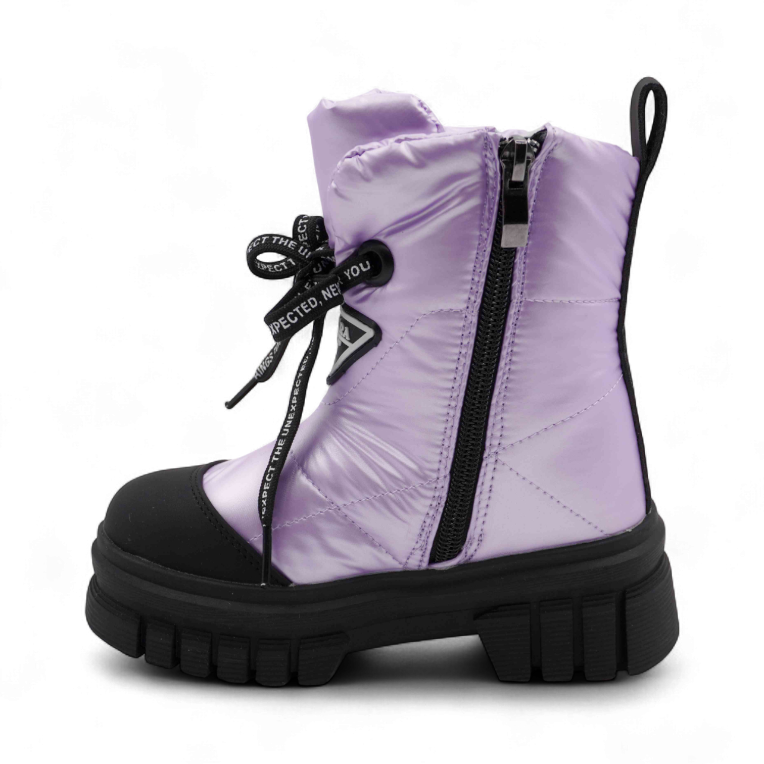 Материал: Верх обуви выполнен из непромокаемого текстиля, что обеспечивает надежную защиту от снега и влаги. Вставки из эко-кожи дополнительно защищают мысок и пятку сапожек от механических повреждений. Уникальная быстросохнущая и водоотталкивающая подкладка из искусственного меха позволяет сохранять сухость и тепло в любых условиях.