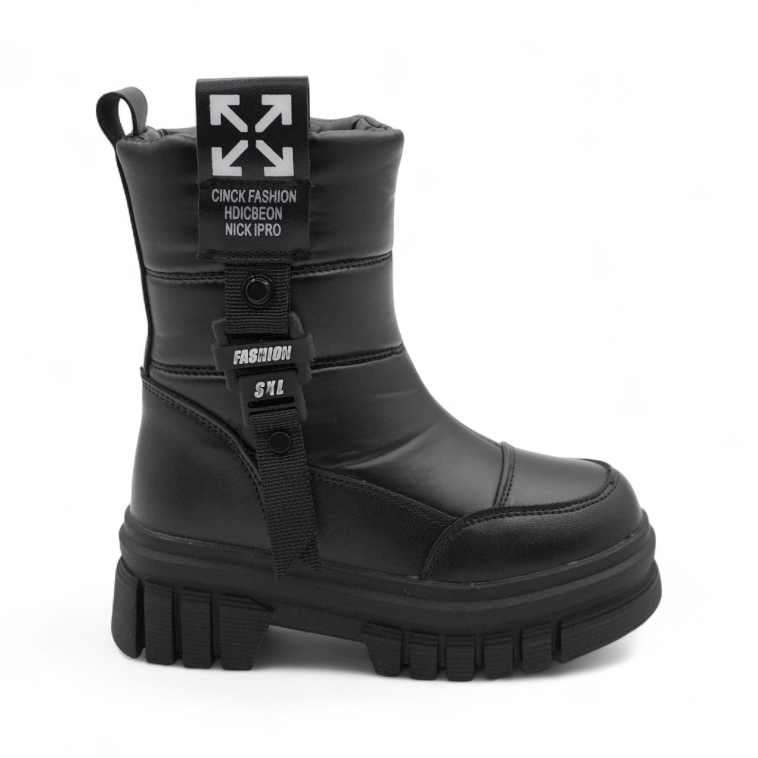Материал: Верх обуви выполнен из непромокаемого текстиля, что обеспечивает надежную защиту от снега и влаги. Вставки из экокожи дополнительно защищают мысок и пятку сапожек от механических повреждений.