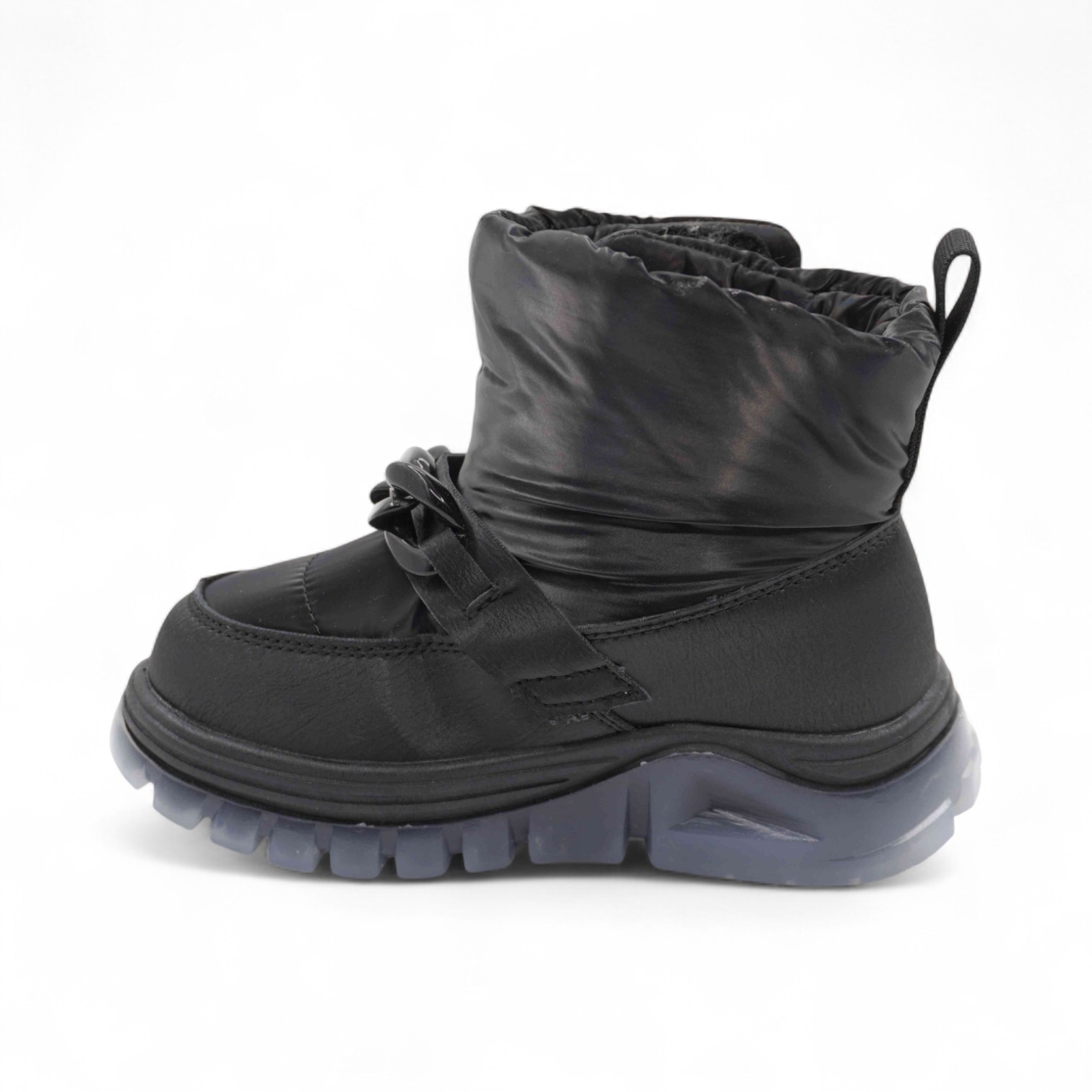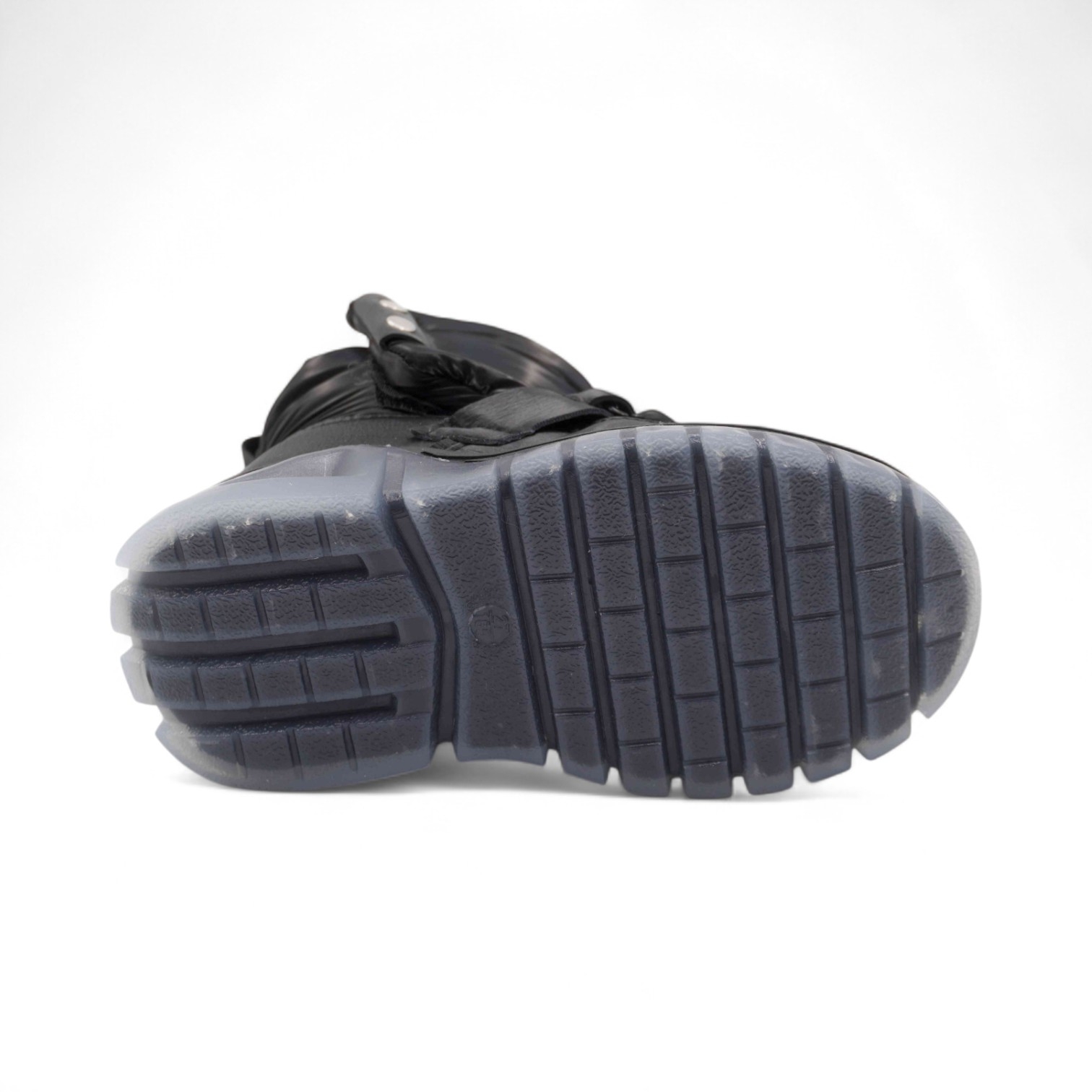 Материал: Верх обуви выполнен из непромокаемого текстиля, что обеспечивает надежную защиту от снега и влаги. Вставки из экокожи дополнительно защищают мысок и пятку сапожек от механических повреждений.