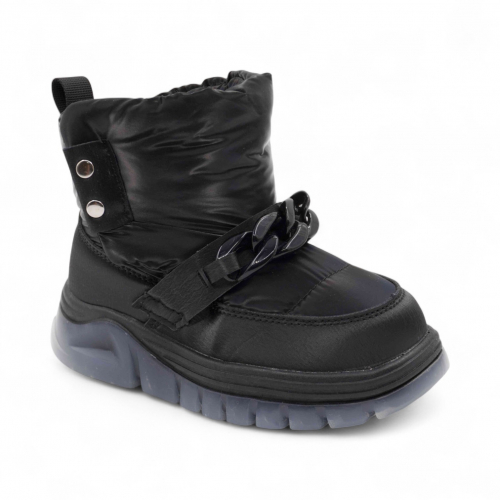 Материал: Верх обуви выполнен из непромокаемого текстиля, что обеспечивает надежную защиту от снега и влаги. Вставки из экокожи дополнительно защищают мысок и пятку сапожек от механических повреждений.