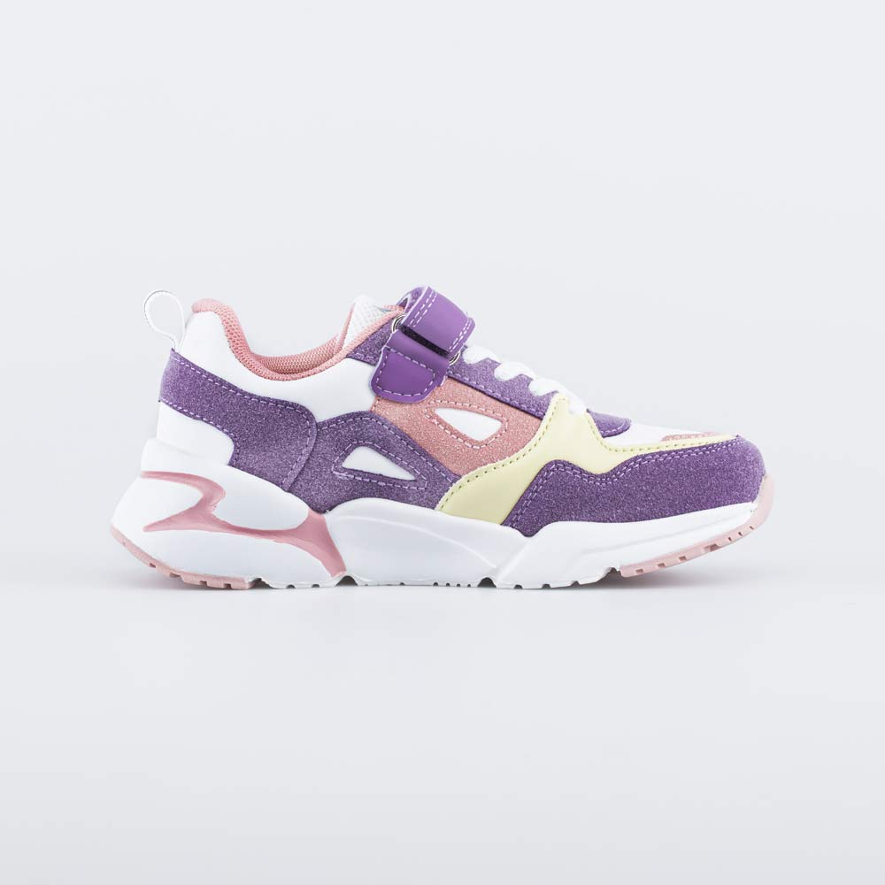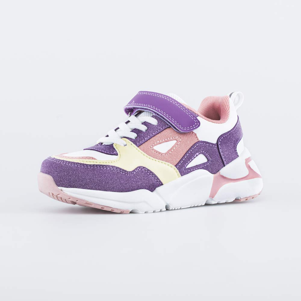Яркие осенние кроссовки для девочки имеют верх из высококачественной искусственной кожи. Текстильный язычок повышает воздухопроницаемость детской обуви.