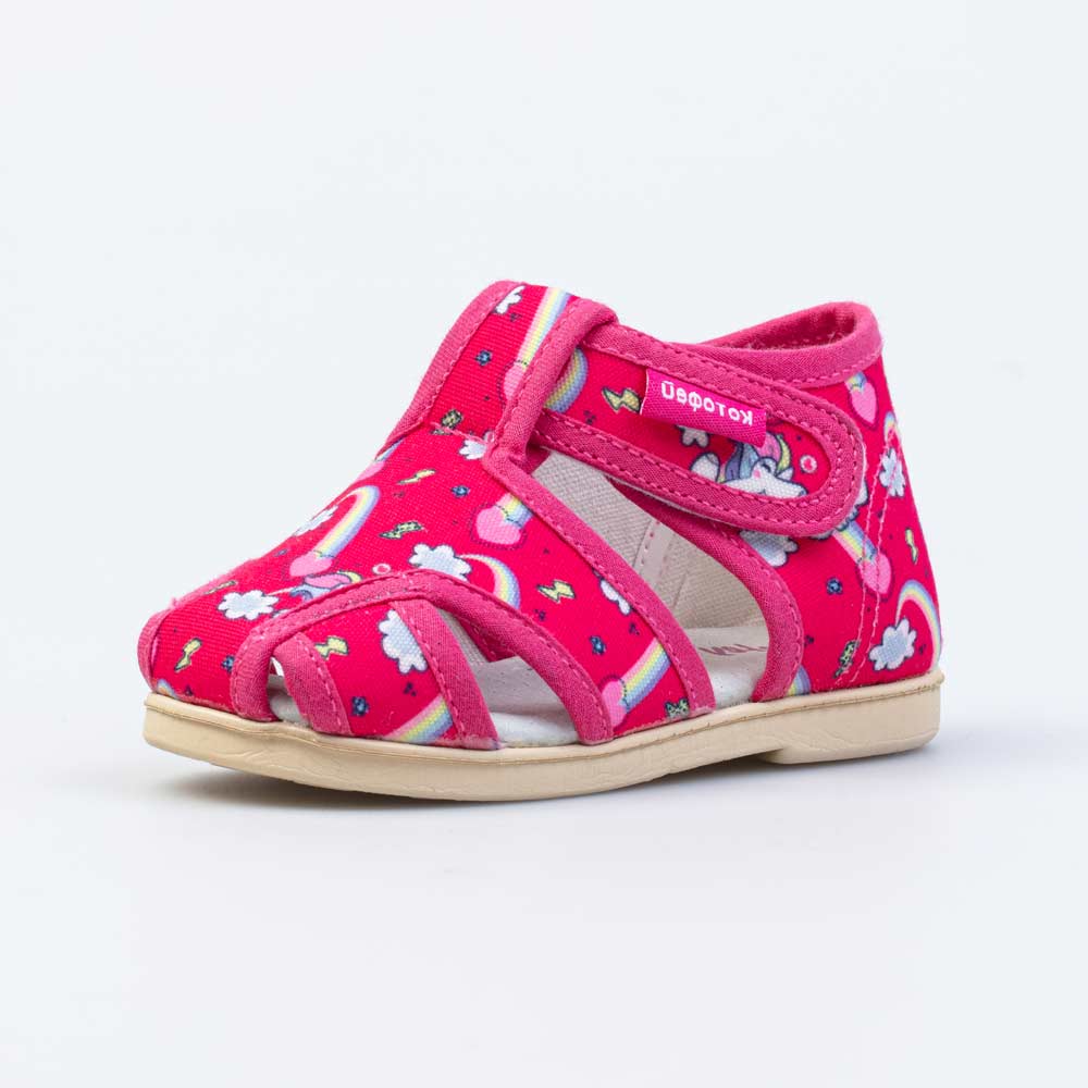 Текстильные сандалии для девочки подходят для жарких дней и повседневной носки в помещении.